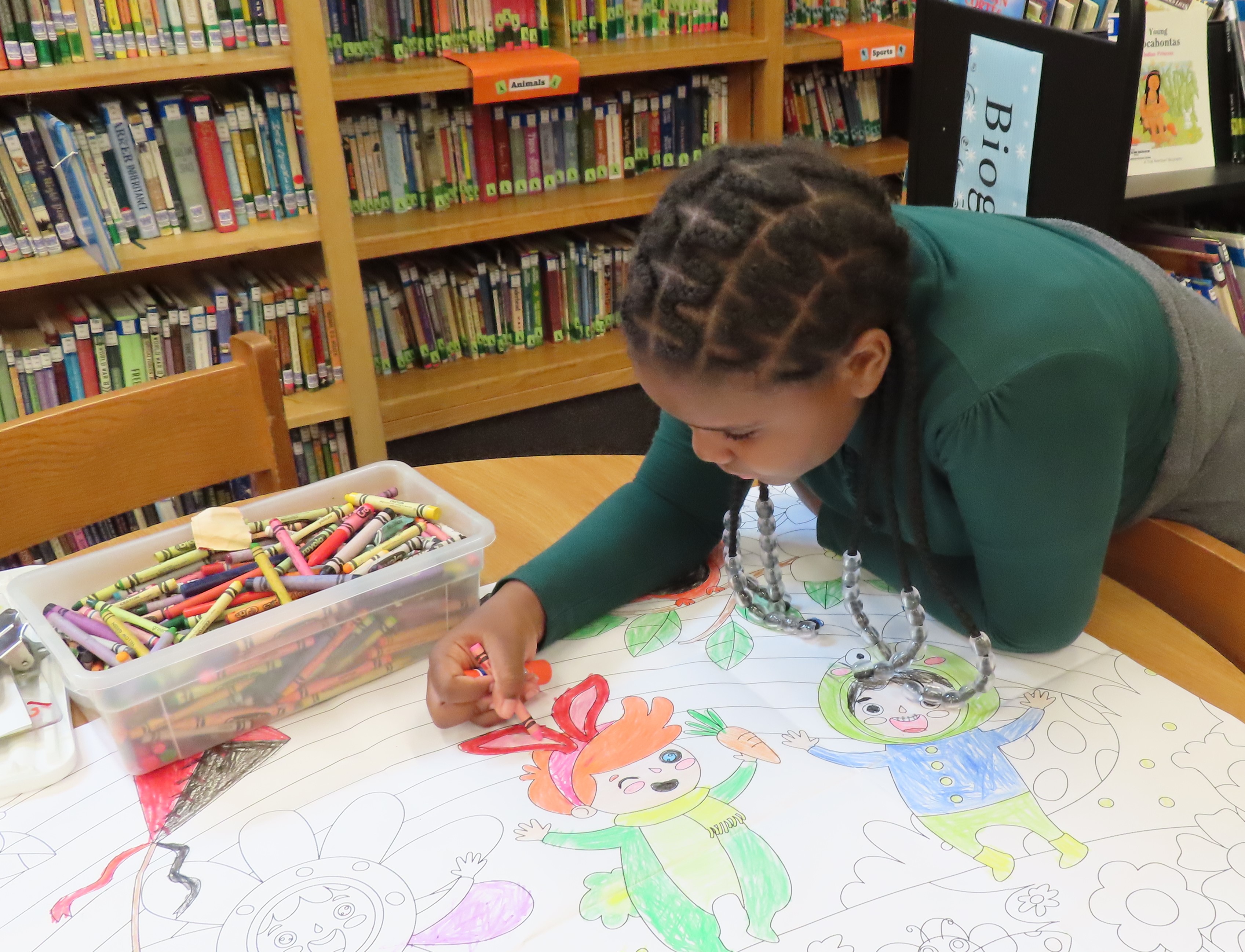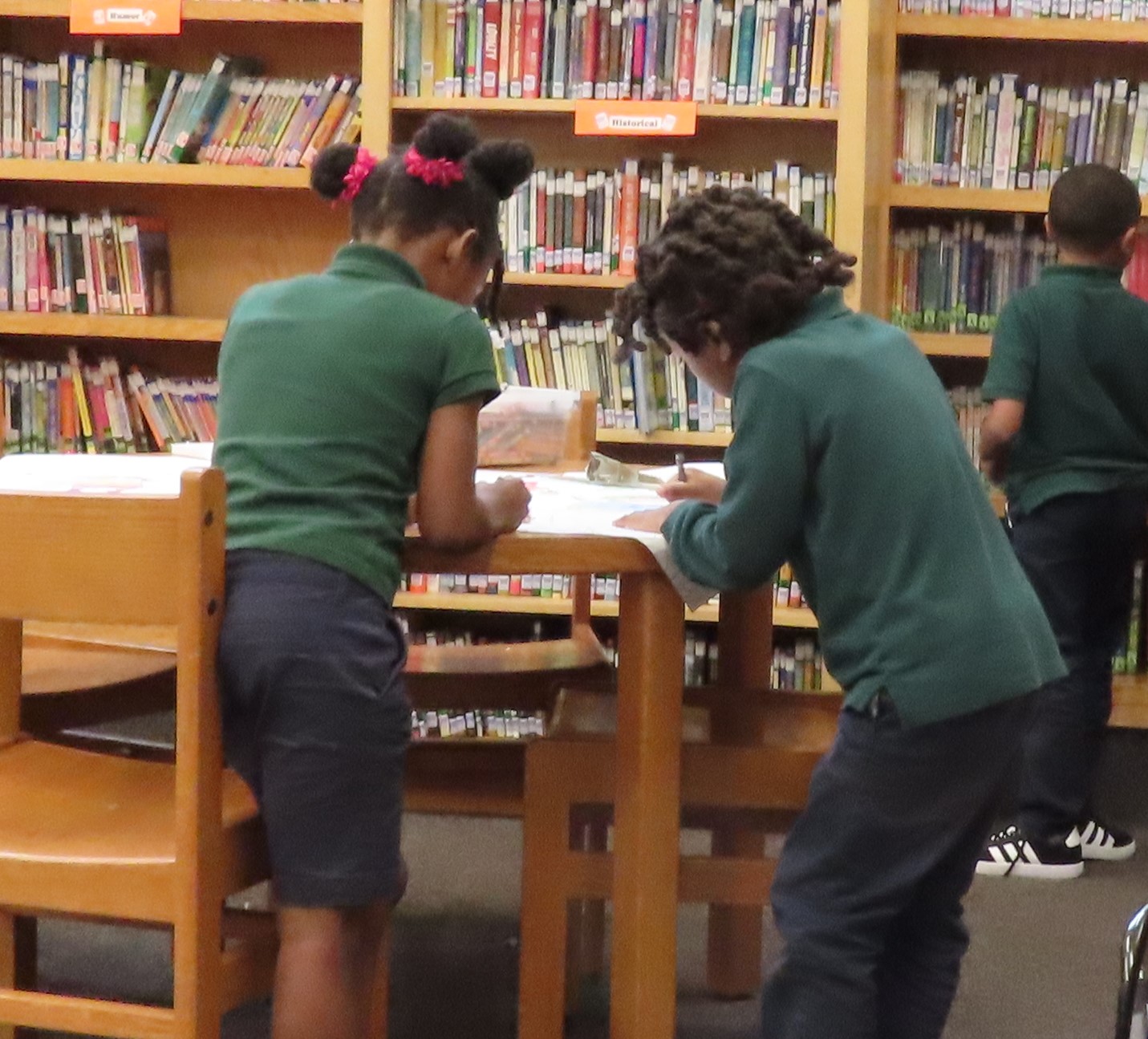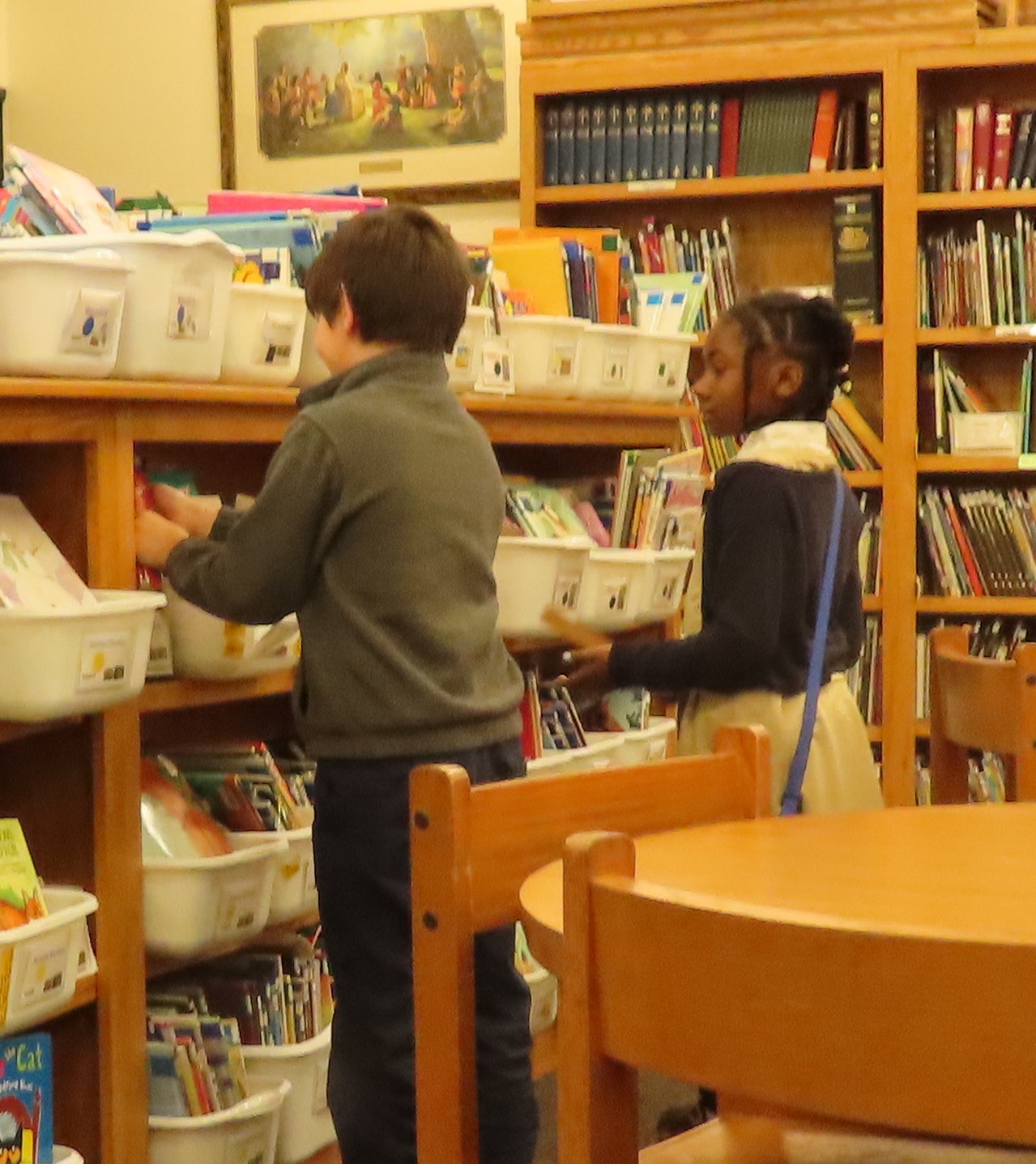 Third Grade is busy coloring on our Spring poster and looking for a book and checking the catalog to find the perfect book. 5-14-24