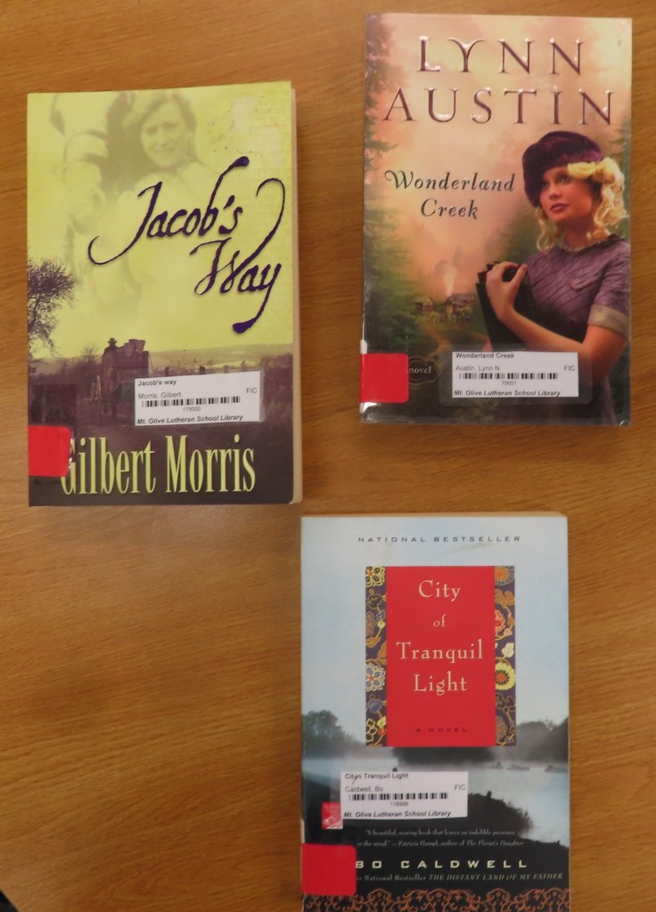 Wonderland Creek by Lynn Austin Alice Grace Ripley lives in a dream world, her nose stuck in a book. But happily-ever-after life she’s planned on suddenly falls apart when her boyfriend, Gordon, breaks up with her, accusing her of living in a world of fiction instead of the real world. Then to top it off, Alice loses her beloved job at the library because of cutbacks due to the Great Depression.